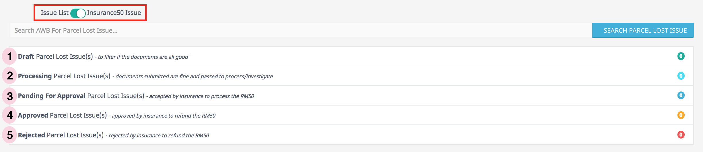 - Insurance50 issue is a record of a third party insurance on each parcel and customer may claim the insurance if they have purchased an insurance for their parcel.