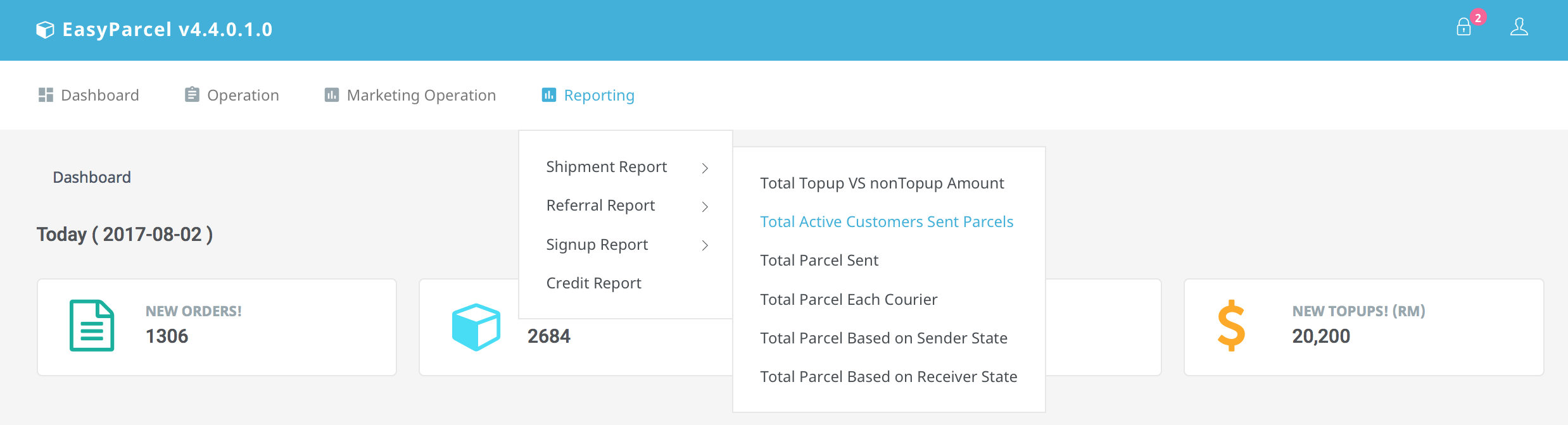 Figure 1.2.1A chart of Total Active Customers Sent Parcels will be generated by selecting date range.